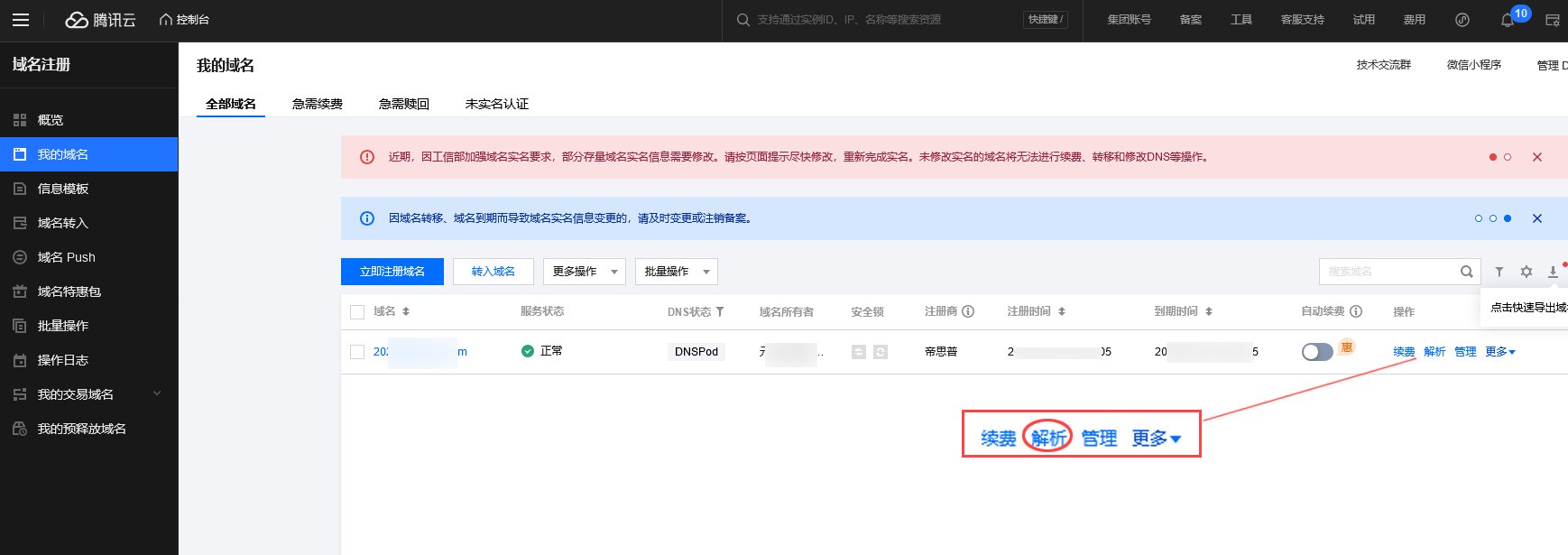 链接地址:https://console.cloud.tencent.com/domain/all-domain/all