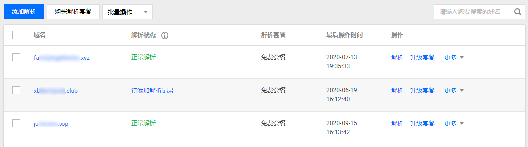 进入你域名注册的所在服务商网站后台,这里我以腾讯云举例,