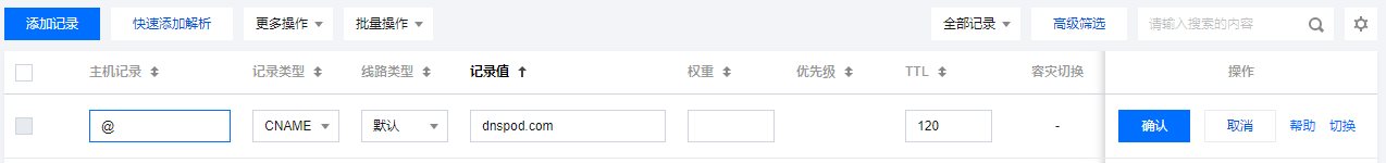 - 记录值:填写你的服务器IP或需要cname 的地址