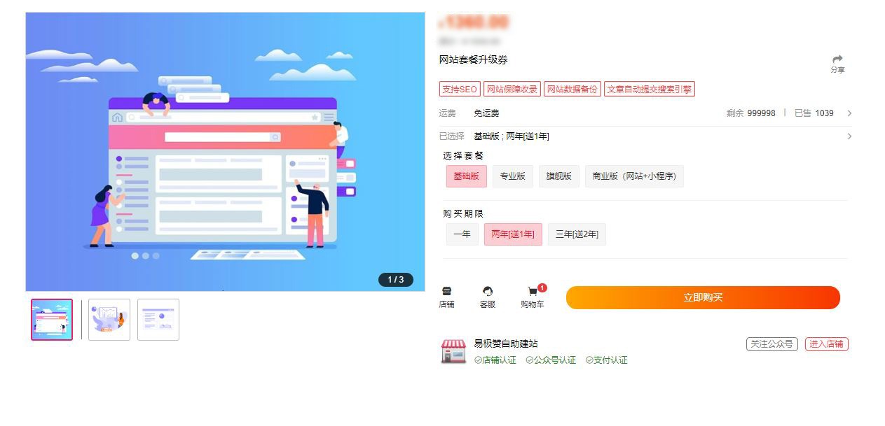 通过下文链接,进入到易极赞站点套餐和功能页面