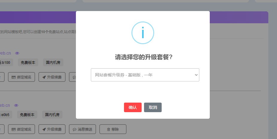 选择对应的升级券,点击确定后,等待站点自动完成升级(大约1分钟左右)。