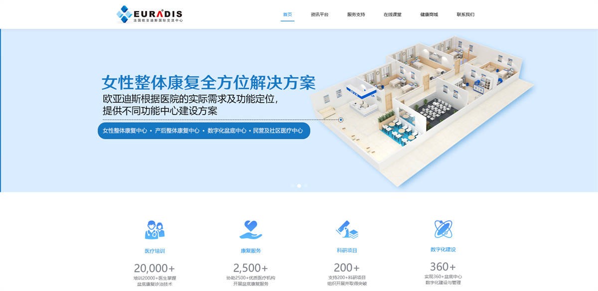 多年来,欧亚迪斯从事医疗技术支持服务,提供国际学术交流、专业医疗技术培训、医疗技术研发。在法国,拥有合作多年的著名国立综合性医院、专科医院、国家医学技术研究实验室、私立医院与诊所和社区临床诊所,特别是一批热爱中国文化的高水平欧洲专家、研究人员与经验丰富的临床医生。在国内,欧亚迪斯与各大医院以及众多国家级、省级专家进行科研合作,组织各类国际、国内认可的专业技术培训班,十余年来努力促进中国盆底健康乃至女性整体健康的医疗技术发展。