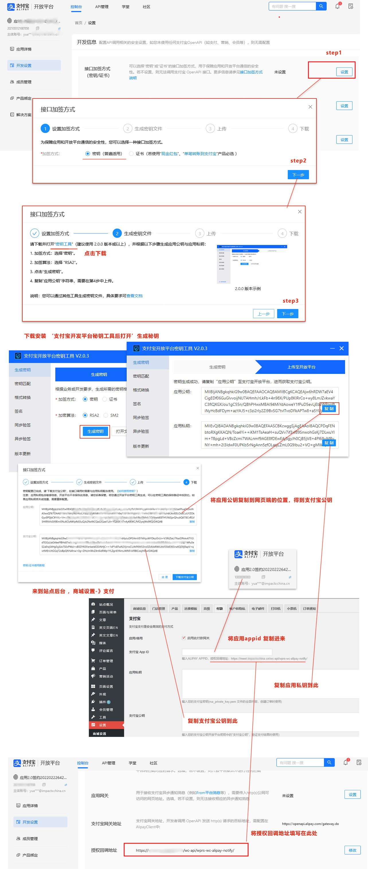 四,将密钥录入到支付宝支付配置中