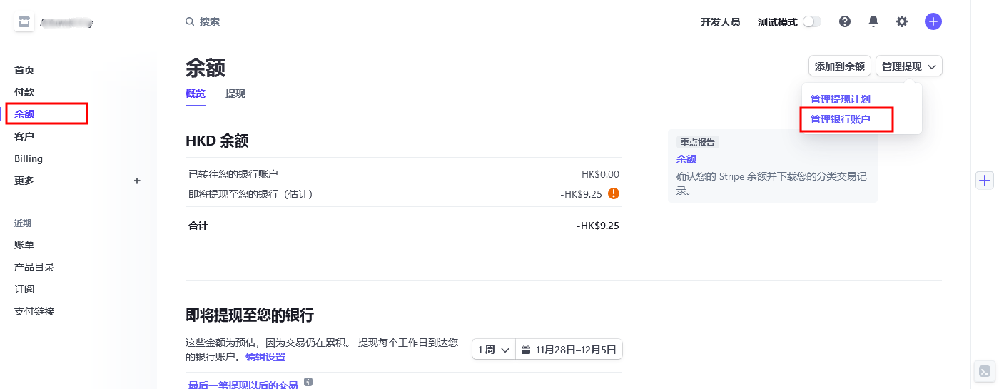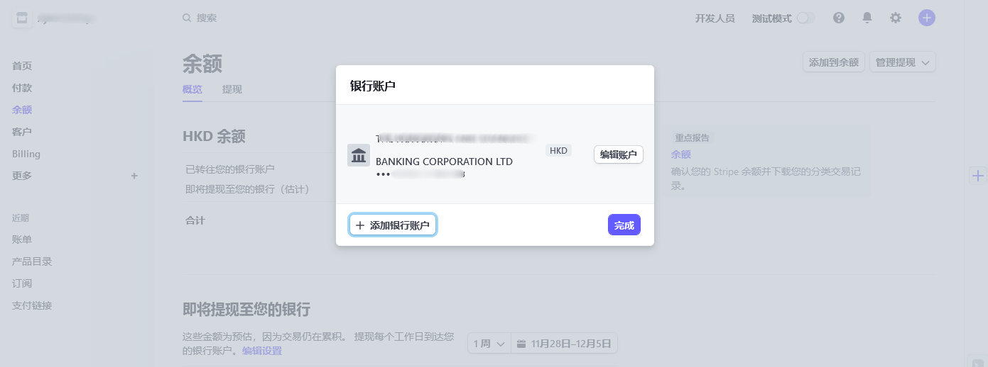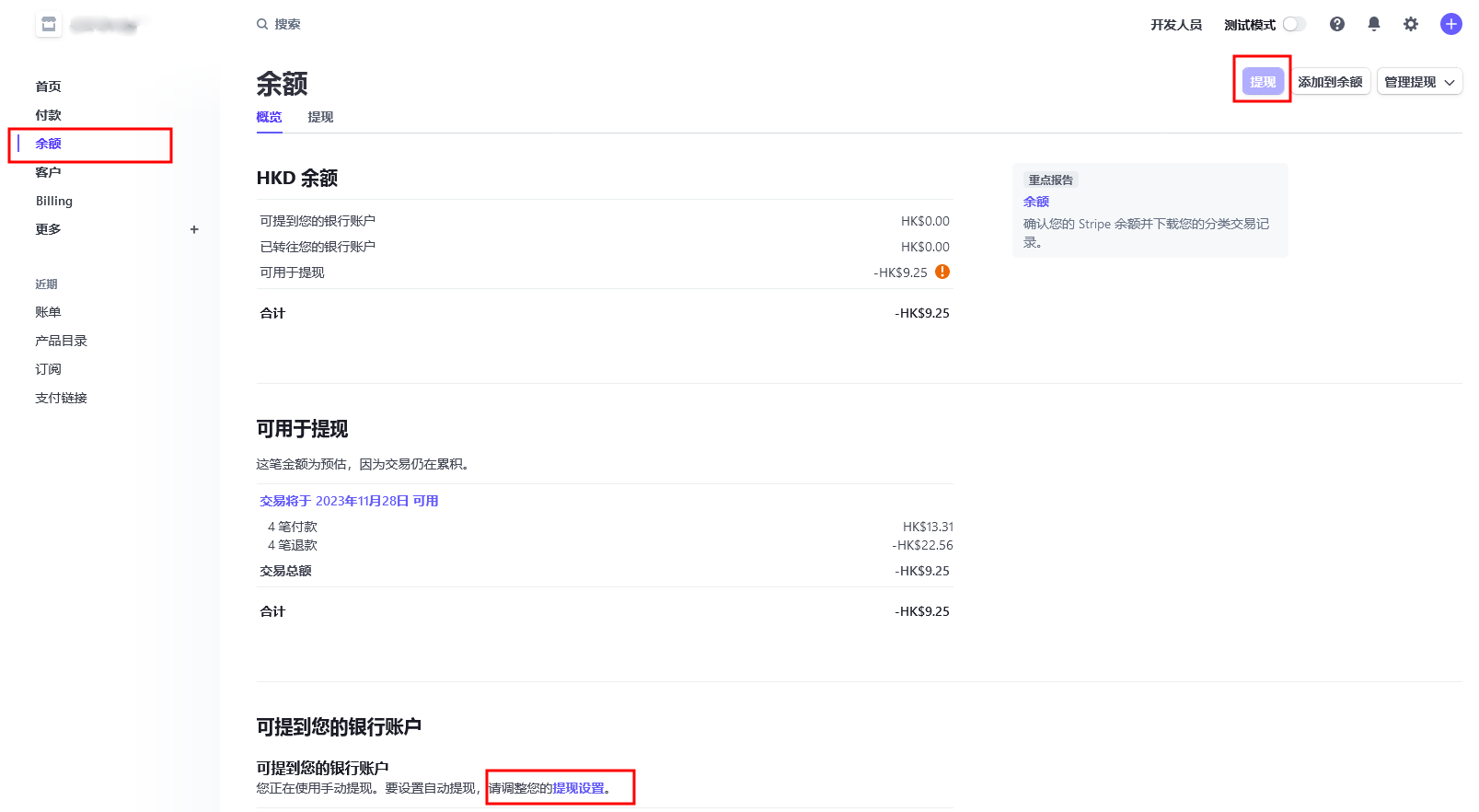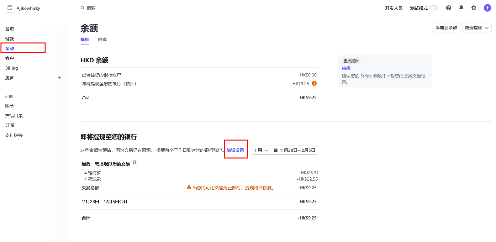 1,登录到你的stripe 账号的后台, 点击左侧菜单余额,可以对 提现方式进行编辑。点击【编辑设置】