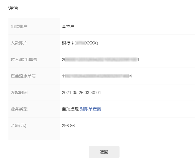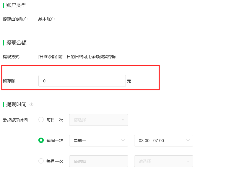 自动提现为系统自动执行,提现金额为上一结算周期内的结算金额;