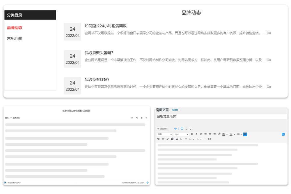 你可以在网站后台轻松创建和管理公司的产品、业务以及案例信息。编辑内容就像写文章一样轻松,你可以输入标题、内容,还能插入精美的图片或视频。不仅如此,你还可以设置产品的价格、折扣信息,创建分类目录,并添加联系电话号码。这样一来,访客们就能通过电话或预留的微信信息与你建立联系,快速达成合作。此外,该网站还支持微信分享功能和二维码生成,你只需将二维码发送到微信群、朋友圈或微信好友,就能实现业务的快速传播和裂变。